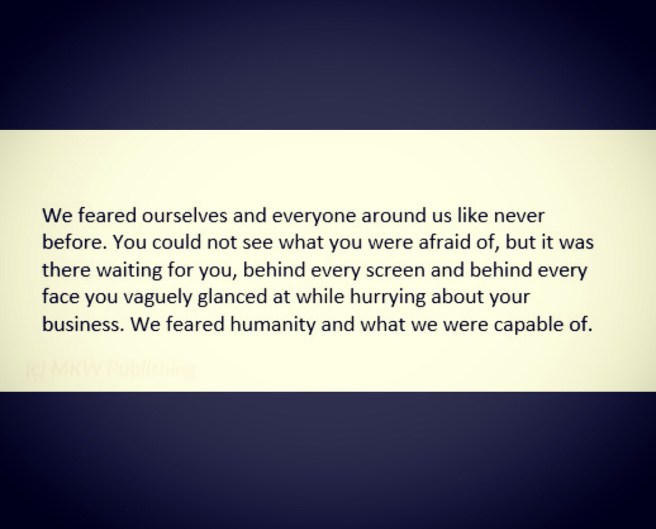 We feared ourselves… August 26, 2018January 18, 2020 ~ MKW Publishing ~ Leave a comment #WIP #ProjectFear