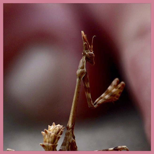 Conehead mantis and European mantis in the garden.