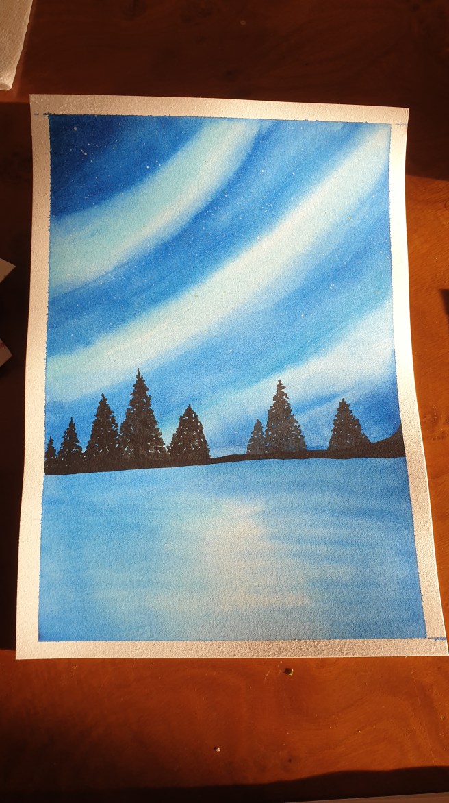 Slowly getting there and finding styles I like. I picked two tutorials, cactus sunrise and a northern lights sky. Pleased with both but instantly wanted to do the northern lights one again and have been this last weekend. Second attempt was much better! but will be on the next post. Turns out my next cactus one was pretty good too, but it all has to start somewhere.