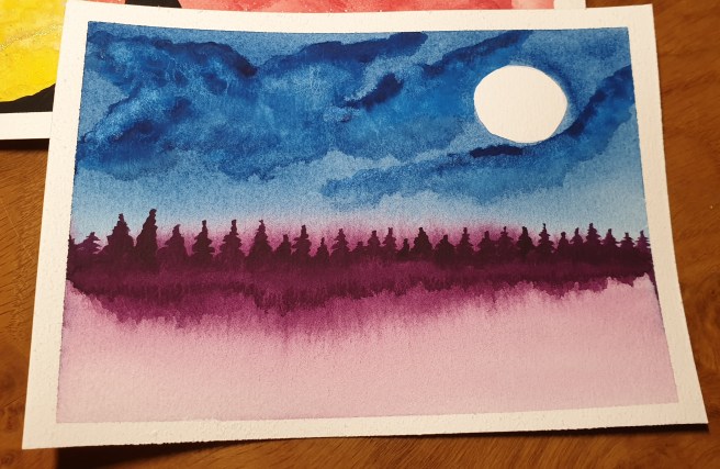 Painting – more landscape March 17, 2021March 17, 2021 ~ MKW Publishing This one turned out a bit different. All I knew is I wanted to try and have a moon. No metallics used on this one which was hard, I really am tempted with all of them to just add a bit of shimmer. But it didn’t need it after all. (c) K Wicks Share this: Click to share on X (Opens in new window) X Click to share on Facebook (Opens in new window) Facebook Like Loading... Related