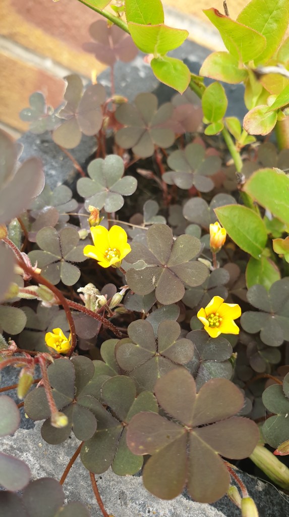 This little plants creeps around the steps and although it is often called a pest, the little yellow flowers bring a bit of brightness.