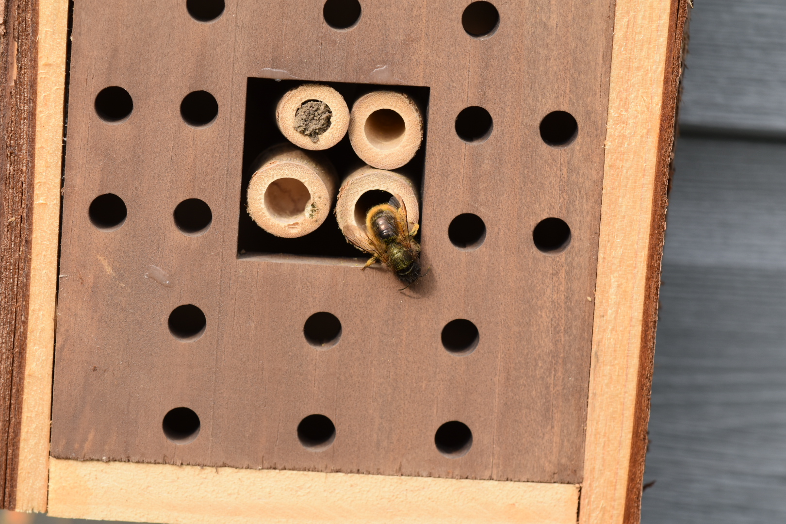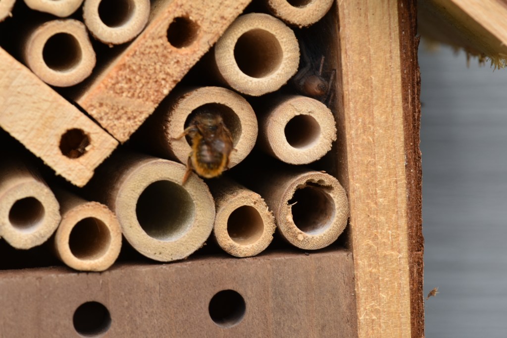 What I did notice too was that one of the four bottom bamboo tubes was now ‘bricked up’ with mud. I had to check my first pic of when i put it up to be sure, but something is in there…