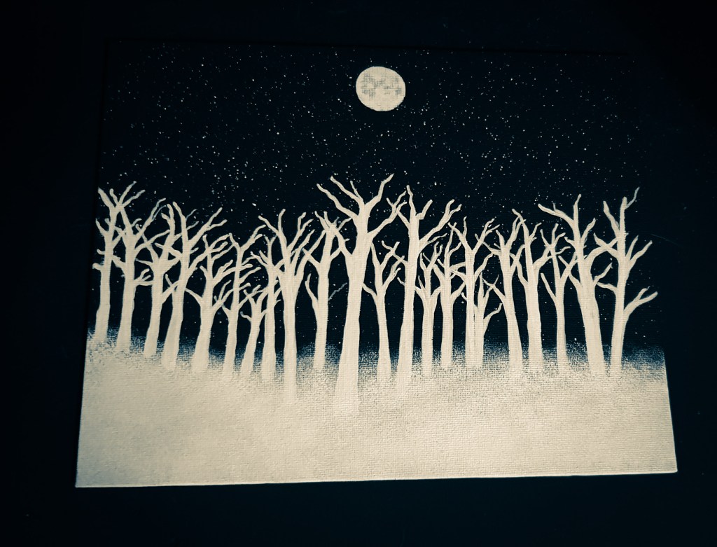 New painting – Black with white trees August 20, 2021August 20, 2021 ~ MKW Publishing Even though I had all my colours out ready, it was a two tone picture that wanted to be created instead. I like it very much. (c) K Wicks Share this: Click to share on X (Opens in new window) X Click to share on Facebook (Opens in new window) Facebook Like Loading... Related