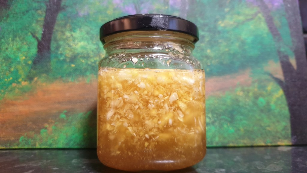 Get fresh ginger, garlic and honey, and an empty clean jar.