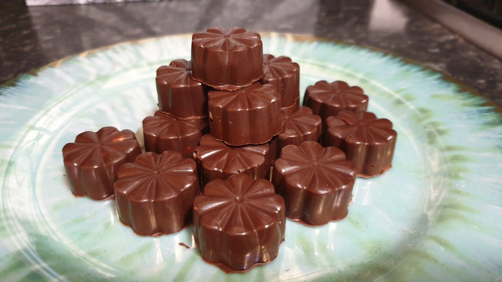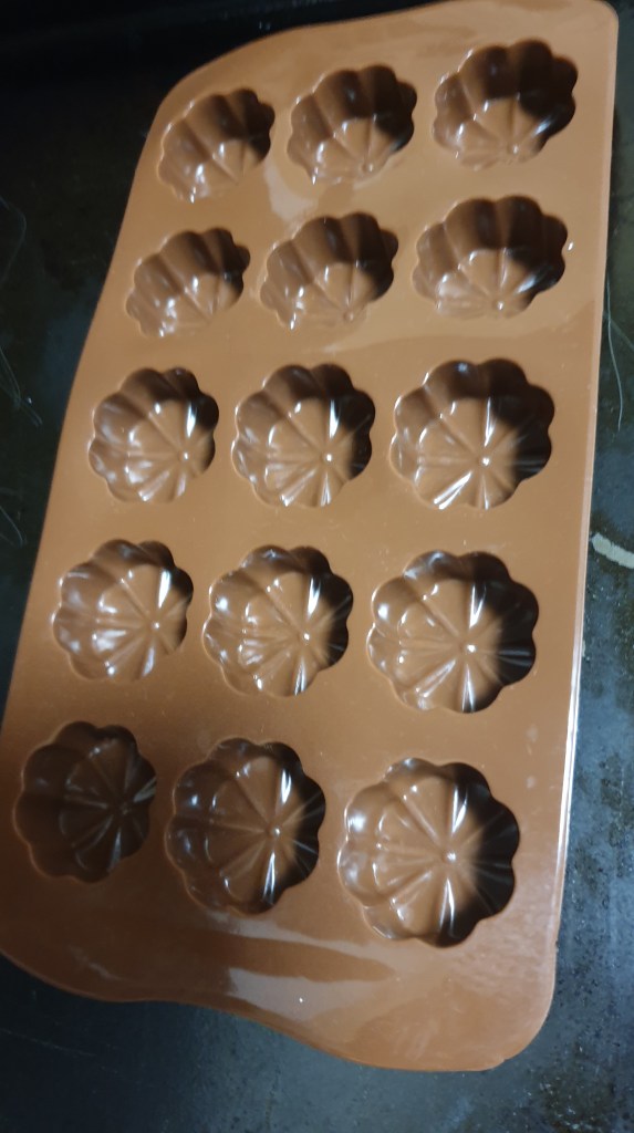 Smooth them over with the back of a spoon or small pallet knife (art supplies came in handy for this kitchen time). I then put them in the fridge for an hour or two but you can put in the freezer for 20 mins maybe if you want them quicker. Then remove from the mould.