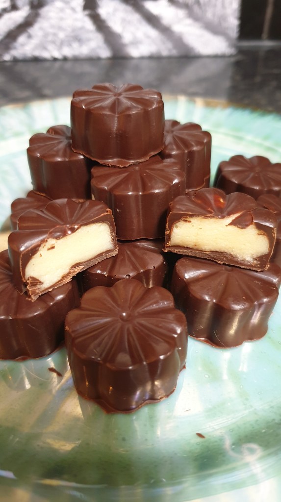 These are my favourites, and not content with only one or two in a box of popular variety chocolates, I decided to finally attempt making my own. I like baking, but sweets and desserts are my favourite. I found a recipe that seemed doable, I halved the ingredients to make a small batch first, and amended slightly as I went. I was actually left with half of the filling left after making this batch, so you could half this again of you want a small amount.