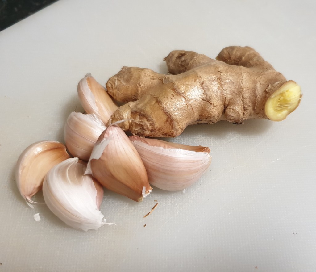 A handful of cloves, and a good gunch of ginger.