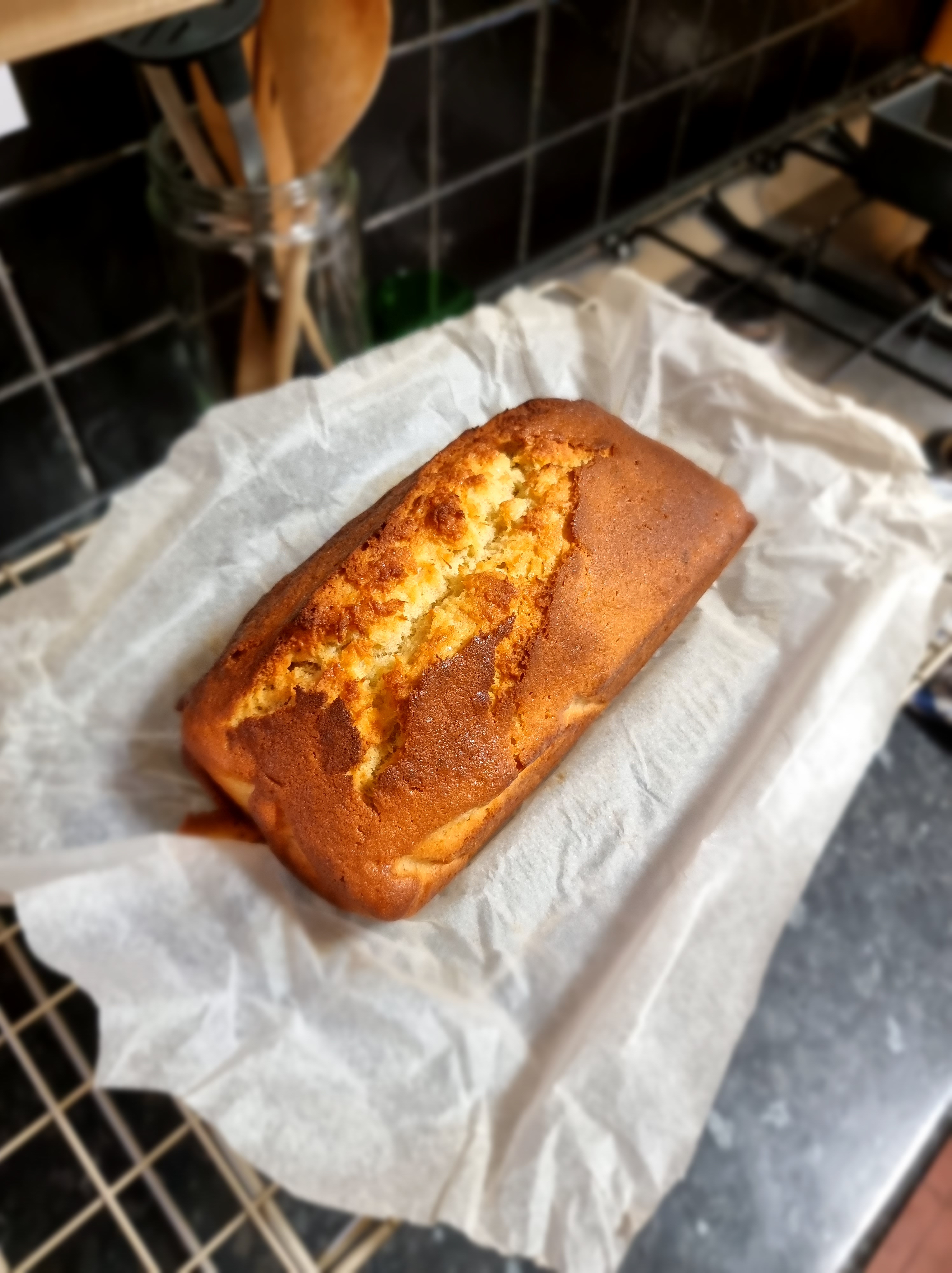 Only 5 ingredients go into this very tasty banana cake, although the recipe calls it bread, so we’re calling it that 😜