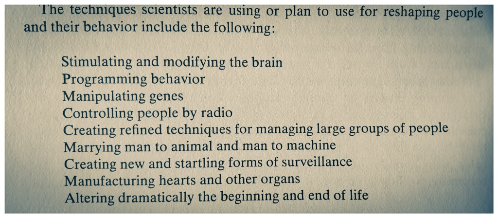 There is also a big push and lots of restructuring going on around medicine. They want that all online too. Monitored appointments, checked and reviewed, doctors and patients alike will feel the scrutiny. This is where the idea that they are implanting digital tracers in people would come into play. They could monitor your heartbeat, circulation, location, intake of calories etc all from an internal sensor. They keep saying they want to integrate people with their phones, and they are already a beacon on us. Once fully integrated, we will be the data. They make no secret of that being a goal. To augment humans and machine to create something weird and seemingly not necessary. But as history and the present shows us, just because we can, does not mean we should…