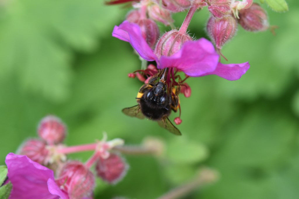 Another year of bees, which only seem to have just got started this year. But this last week has seen some activity at the hotel, and the geraniums are providing some brightness and pollen for them. No Calendula so far yet this year, the slugs keep getting all the new seedling popping up!