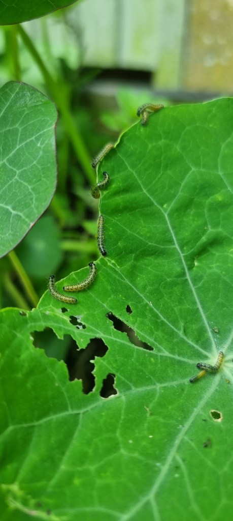 Found a number of eggs on a small nasturtium in my hanging basket, thought I better relocate wheh hatched so they have enough food. Forgot, then noticed a much smaller nasturtium not long thereafter. Now actually relocated and quite happily muching their way through, and getting bigger by the day.