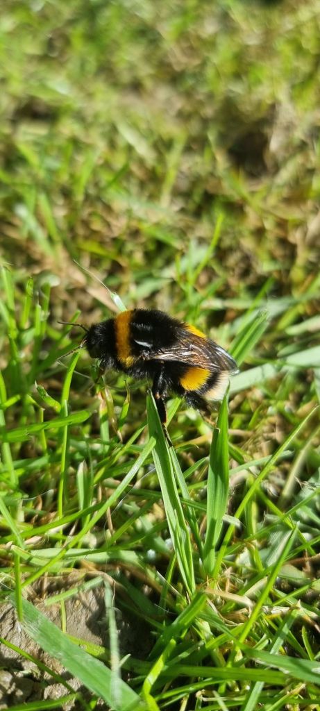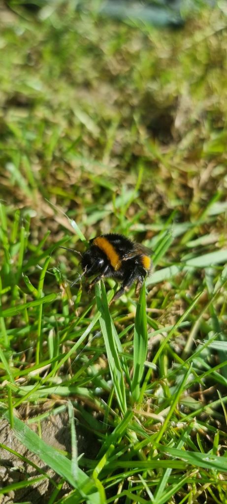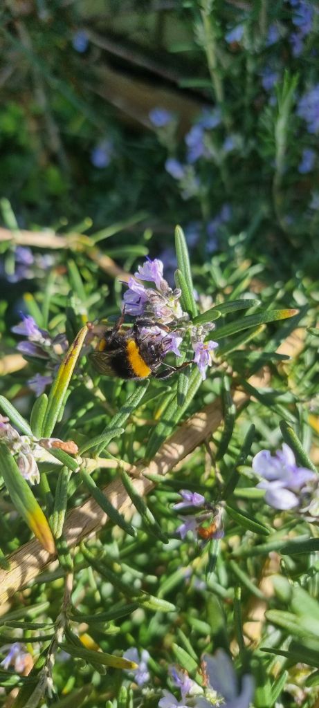 Saw a large bumblebee sitting in the grass, enought time for a quick pic, then it was over to the rosemary for a snack.