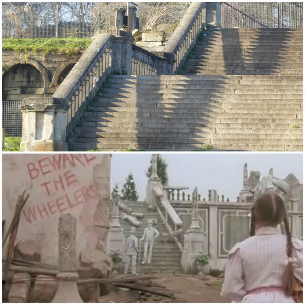 Return to Oz, when Dorothy goes back and discovers Oz in ruins and people having been turned to stone. In particular, the stairs shown when she first gets there reminded me of the Crystal Palace Park staircase. And how easily things can either be destroyed or tidied up so that no one would ever know what was there. Or the context in which it originally sat no longer visible around it, getting a new story and placing as time goes on. The things that didn’t make it, I presume their grandeur was too much, and the lies and tall tales were not enough to cover it. So, fires and ‘wars’ were used as a destructive cover to clear the way for a new mindset and landscape. And there is much speculation about the need for a great number of asylums that popped up across Europe and America, perhaps to remove those who remembered things, or just knew too much of The Old World.