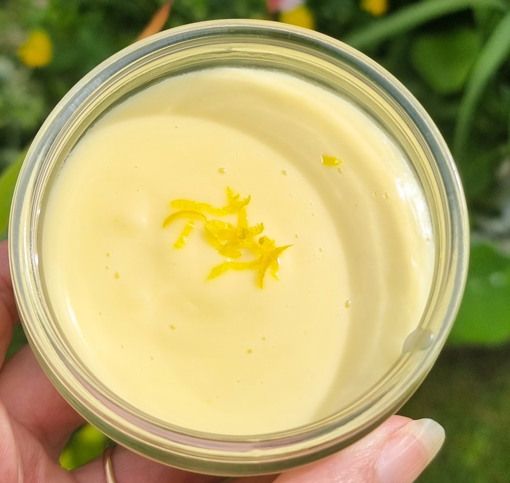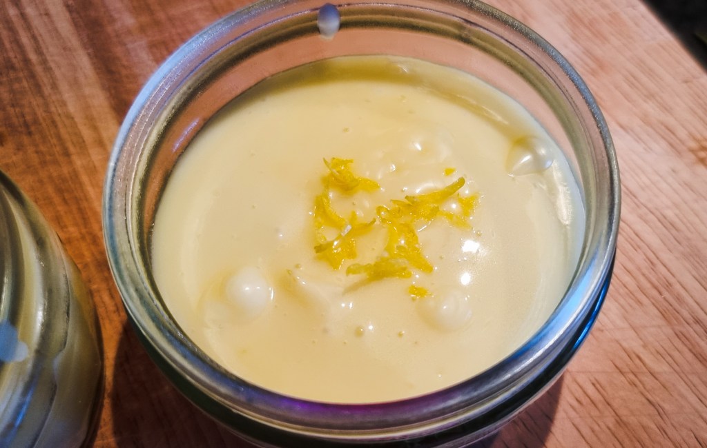 Then pour into chilled ramiken dishes (this recipe makes 2) – and let them set for at least 4 hours, or overnight. Then enjoy the lemony goodness.