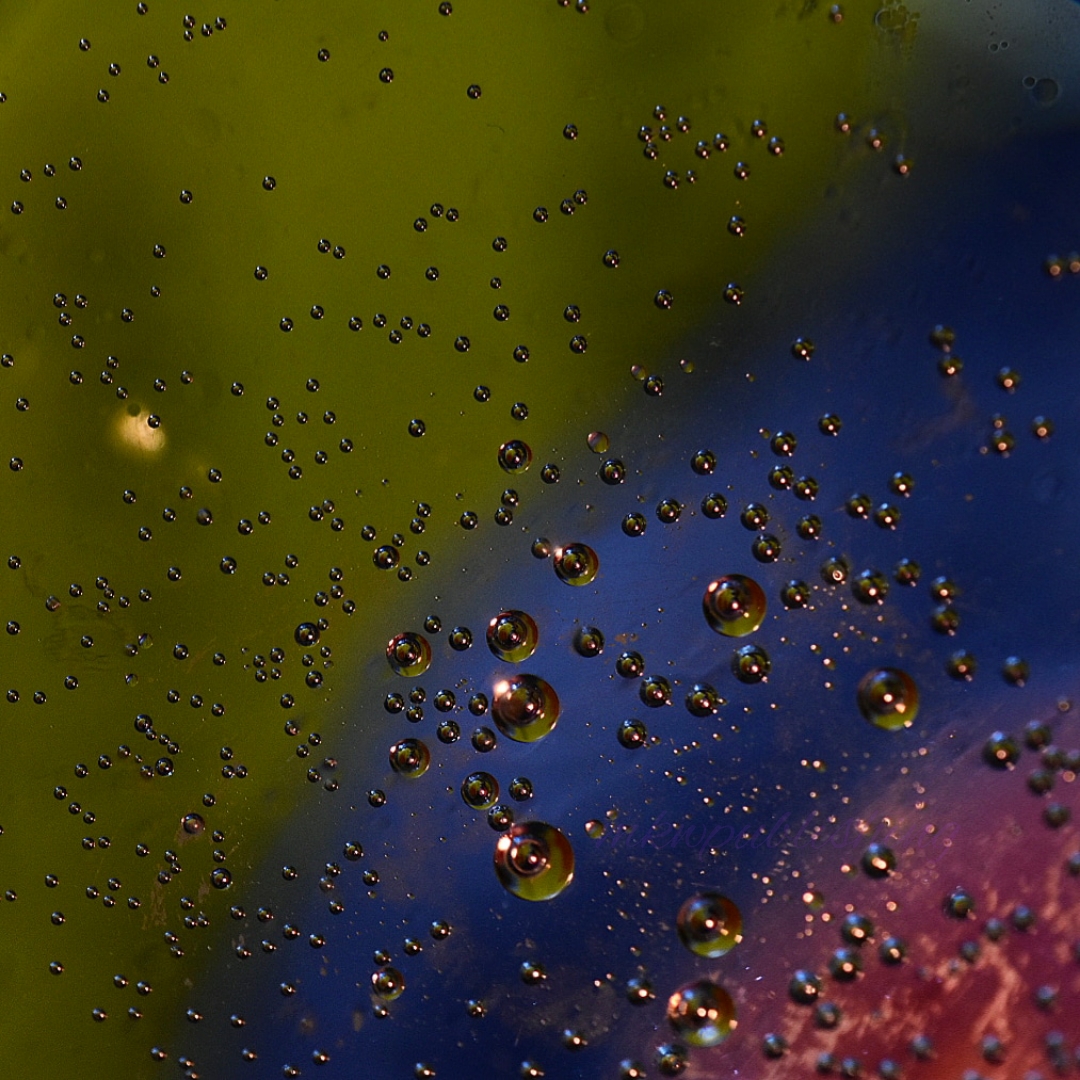 Some more abstract oil drops. It was pretty cool to get a tri coloured effect in the background. Turns out using books with different covers helped ๐