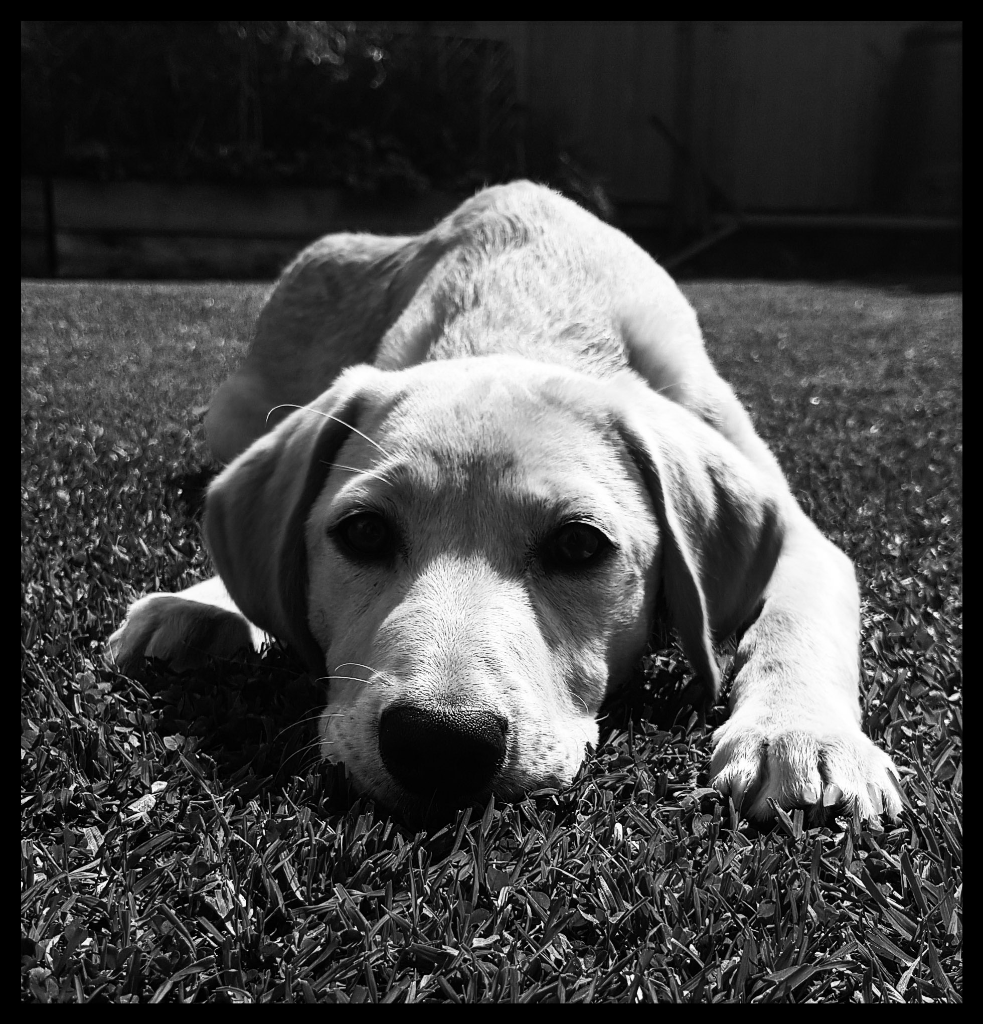 Our labrador puppy tired out from playing in the garden back in the summer.