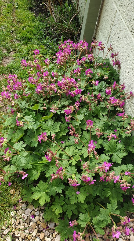 Starting as just an ordinary small plant i bought for my wedding anniversary a couple of years ago. It’s growing and spreading. Creating a small little patch of green and pink. It’s lovely. Smells a bit weird when you touch the leaves, but the bugs like it.