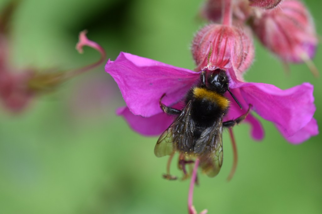 Started with another bee because they are awesome and all over the bigroot geranium at the moment.
