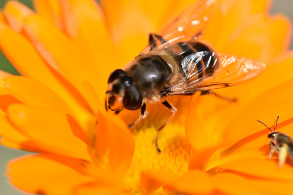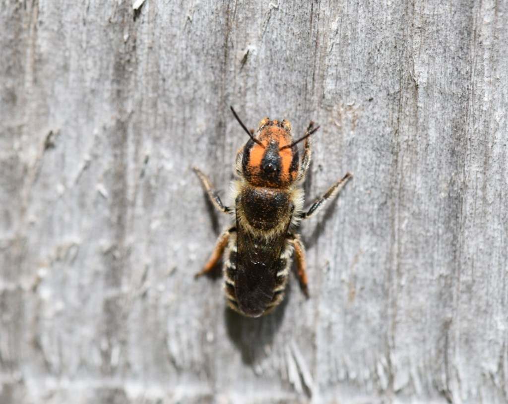 At first I thought this insect had orange eyes. He was moving quickly and didn’t settle for long. After getting a couple of pics he left. I studies the picture to see what it was having worked out it was a type of bee, and discovered the orange bits appear to be pollen. Must have been a very pollen filled flower he visited before getting to me garden.