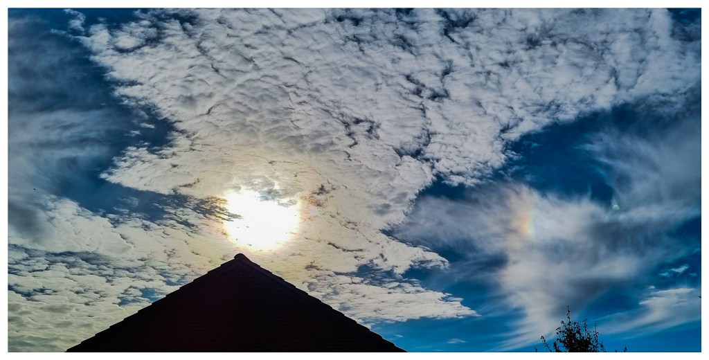 More mixed clouds, a sun halo and a bit of iridescent cloud as well!
