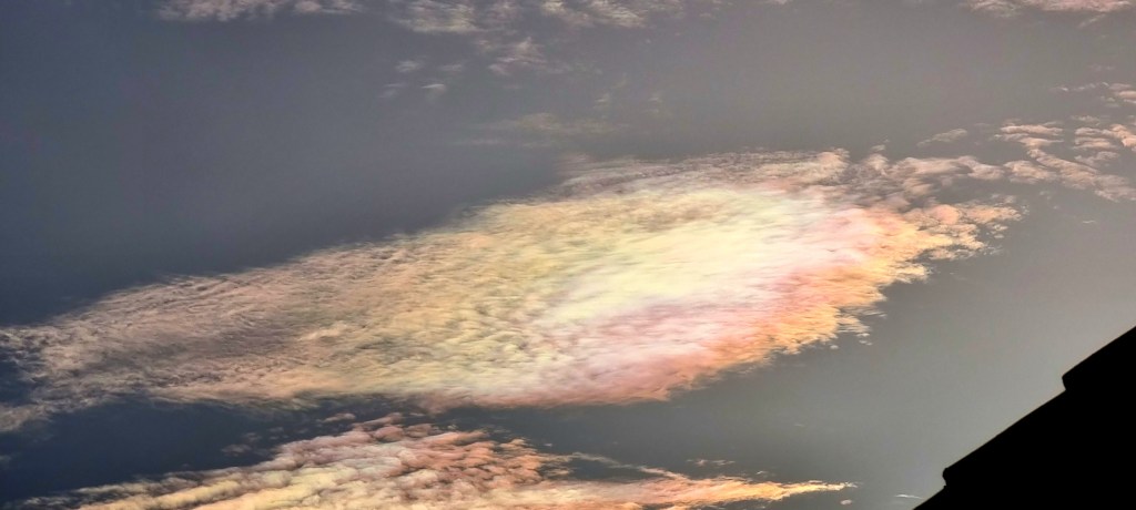 It was quite special to see an iridescent cloud just above the other clouds as the sun started to dip for sunset.