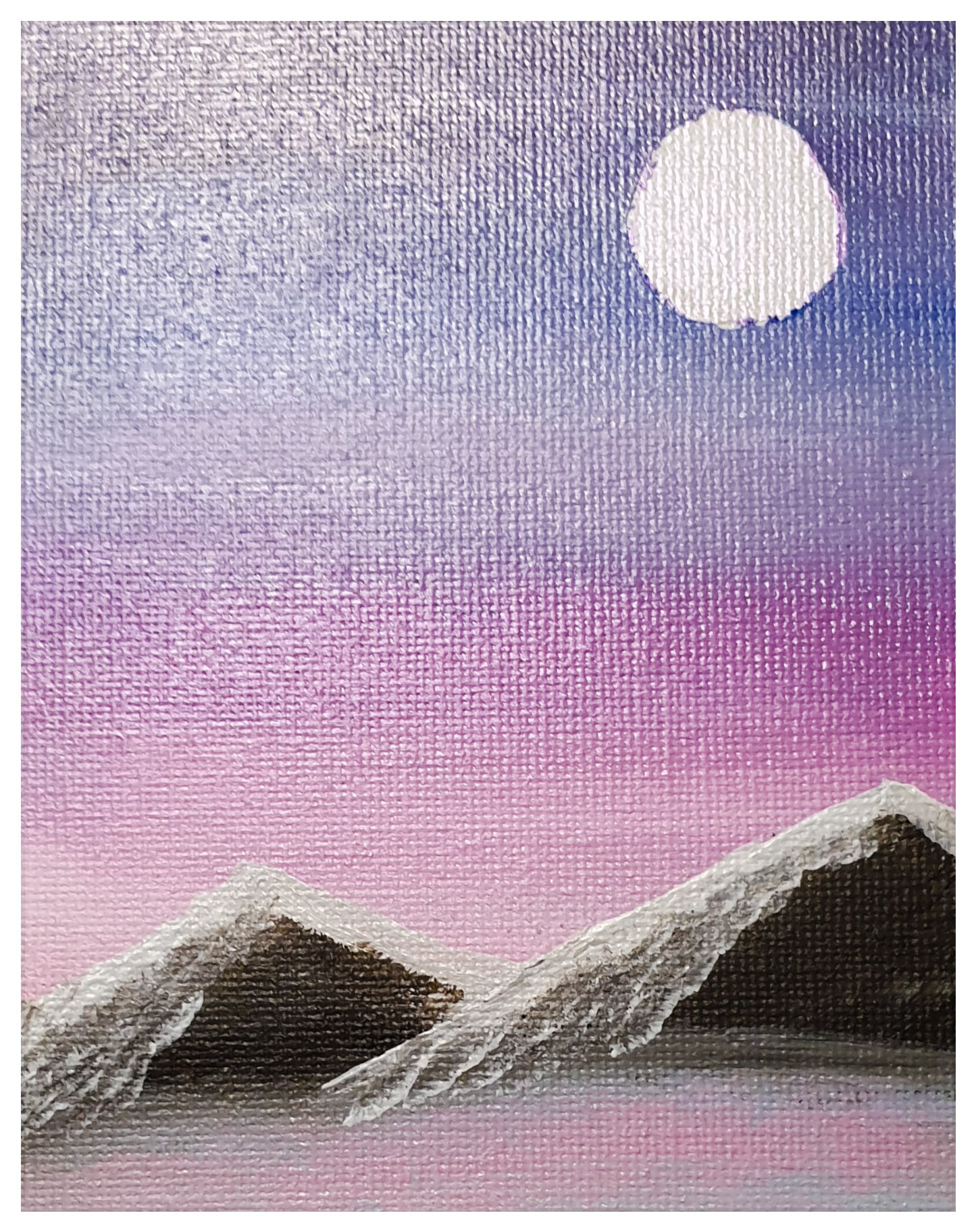 This is one of my early acrylic attempts mountains. It didnt turn out exactly how I wanted it to but I really like it and find it calming. I did it in a panel on canvas but may try it again on it’s own.