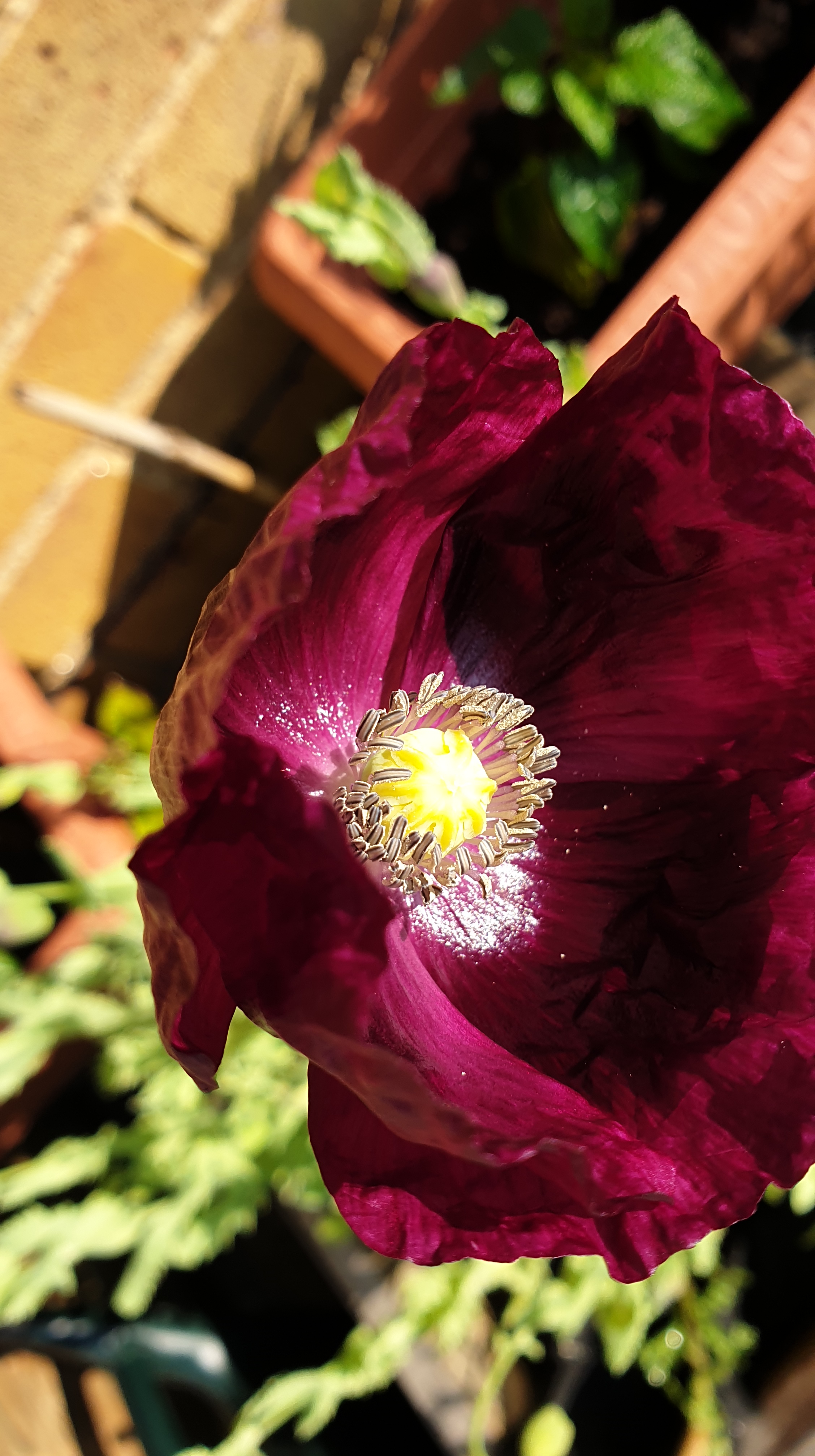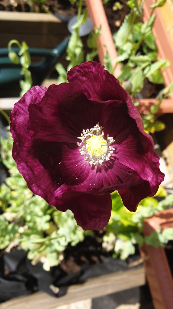 Just one opened first, a beautiful dark purple poppy to give the Bees something extra.