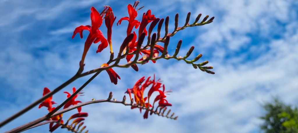 The blueberry leaves have turned a wonderful bright red now that it’s autumn. Looked very pretty against a lovely blue sky.