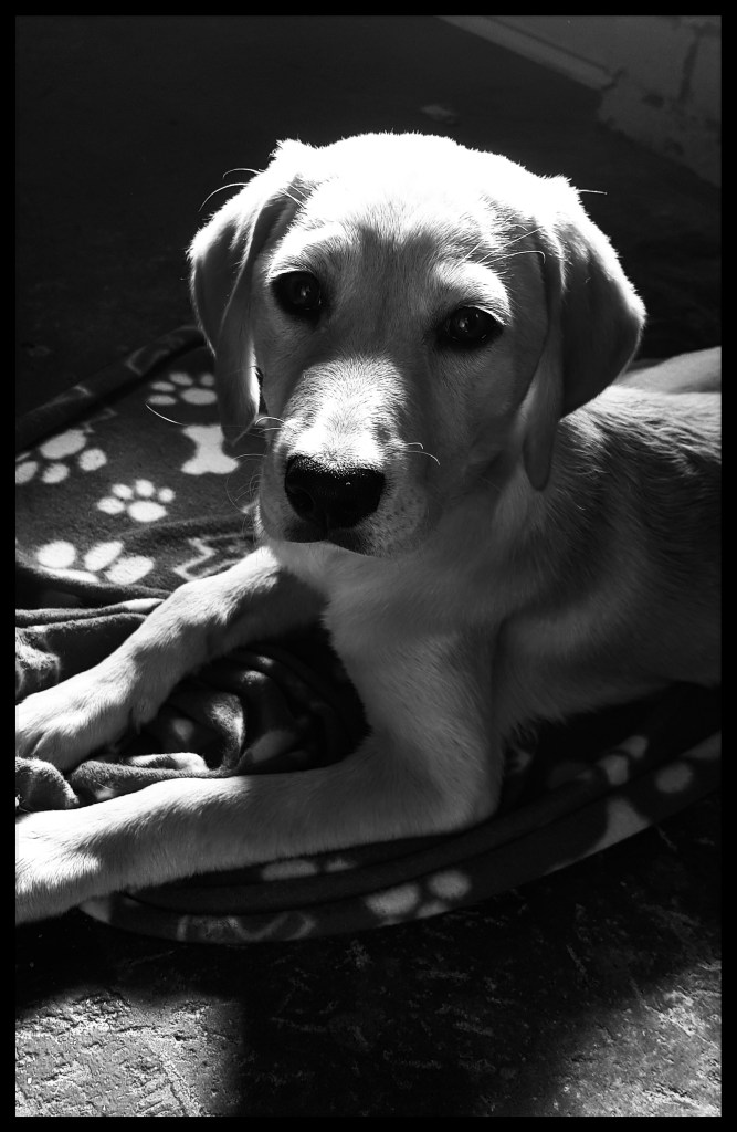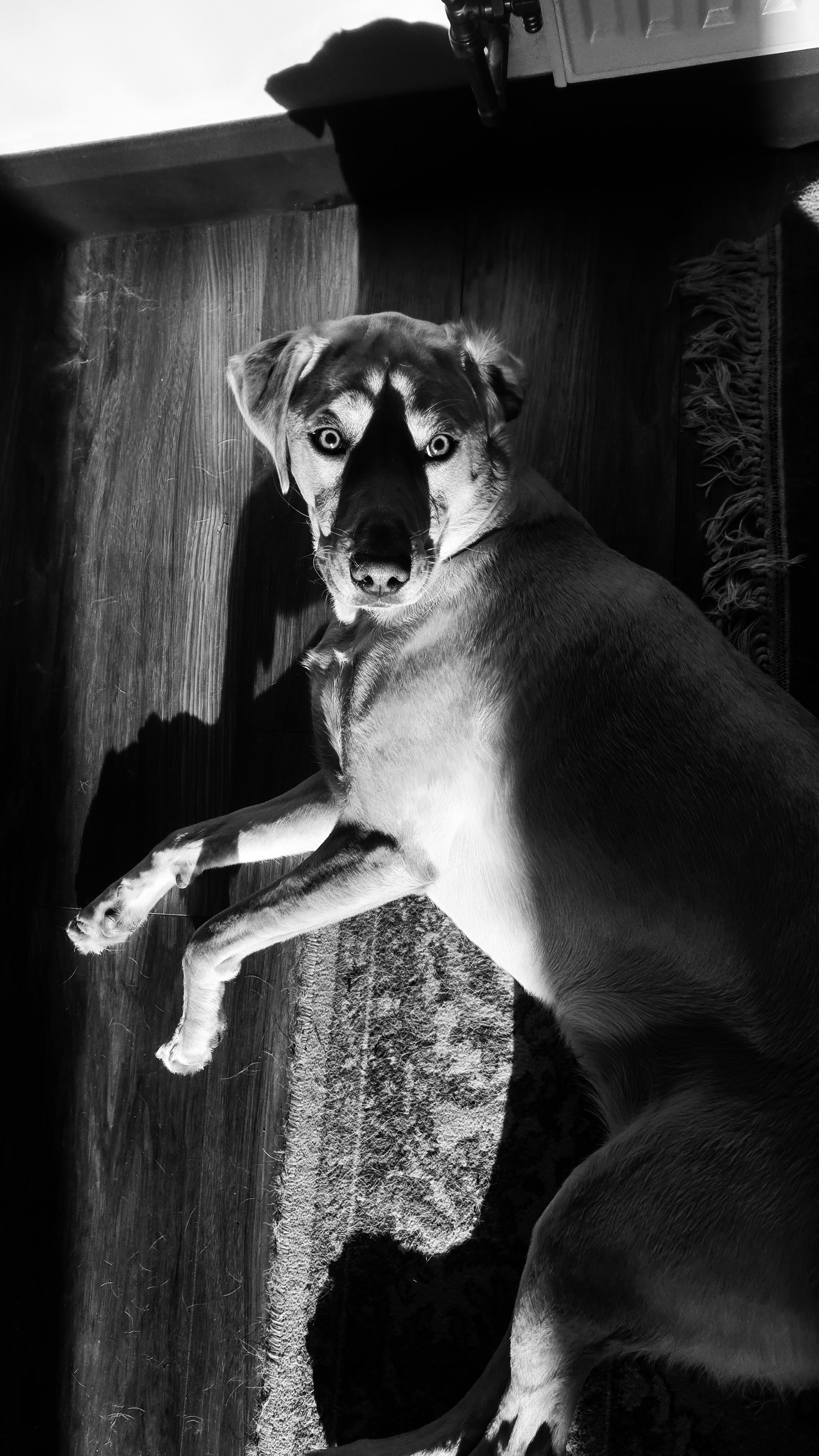 Sometimes the light comes through and hits the dog just perfectly. Unfortunately she usually moves as soon as she sees me try to get a picture. But this time I was lucky, I was able to twist round in my chair and get the shot! Not a perfect photograph, but still one that makes me happy.