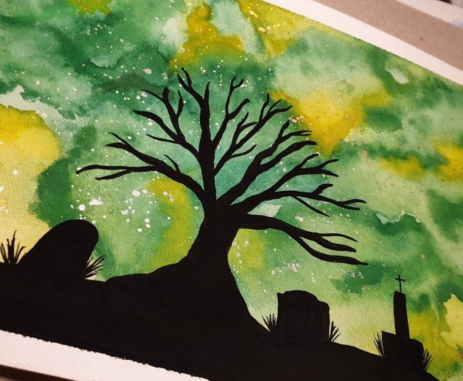 Continuing with watercolours I redid the cactus and night sky ones, choosing to do different colour combinations to see what works best.