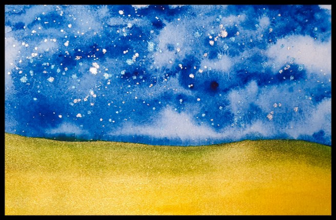 This one I originally intended to have more in it, but once the sky and golden field were completed, I had to stop. I really like it as it is.